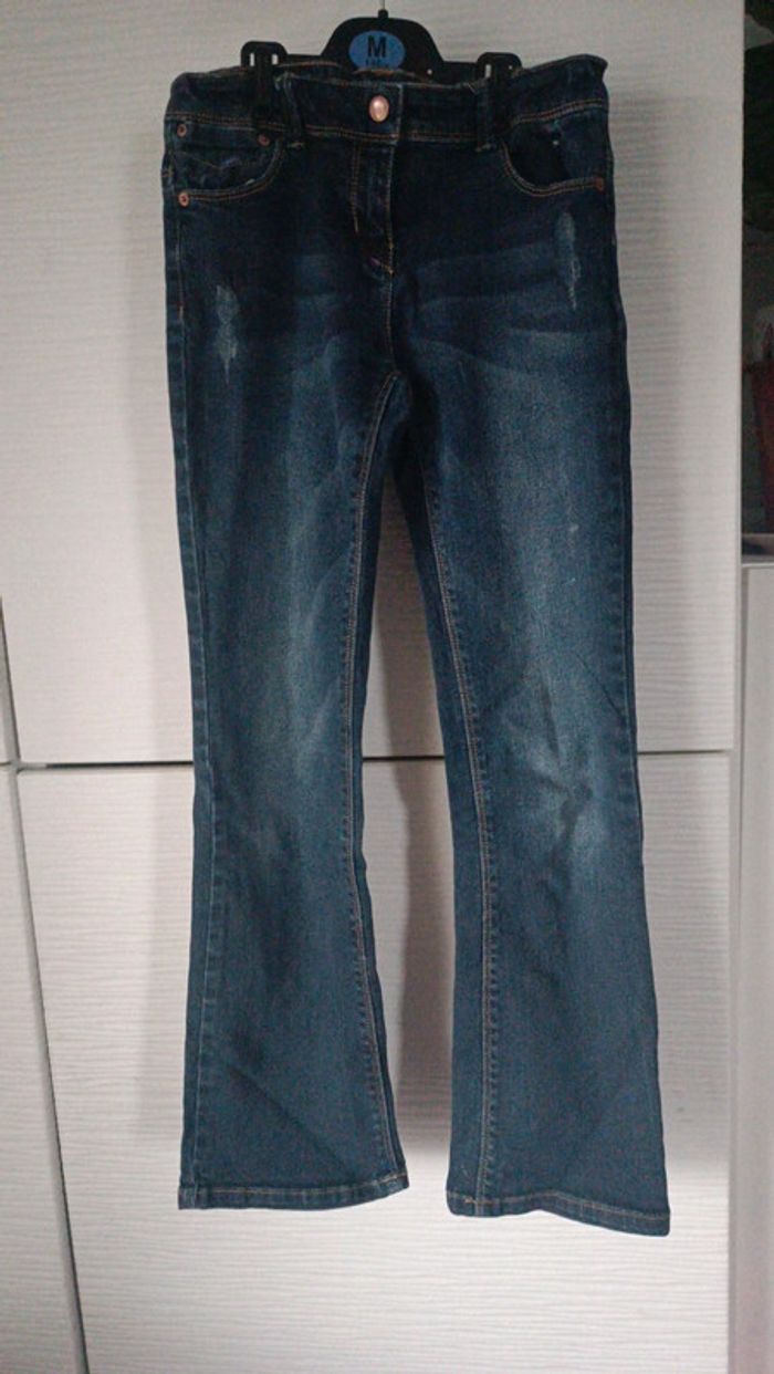 Jean avec jambes évasées en bas Excellent état juste un petit point de stylo rouge sur le genou mais très peu visible Taille 10 ans Éraflures d'origine #laura845kids