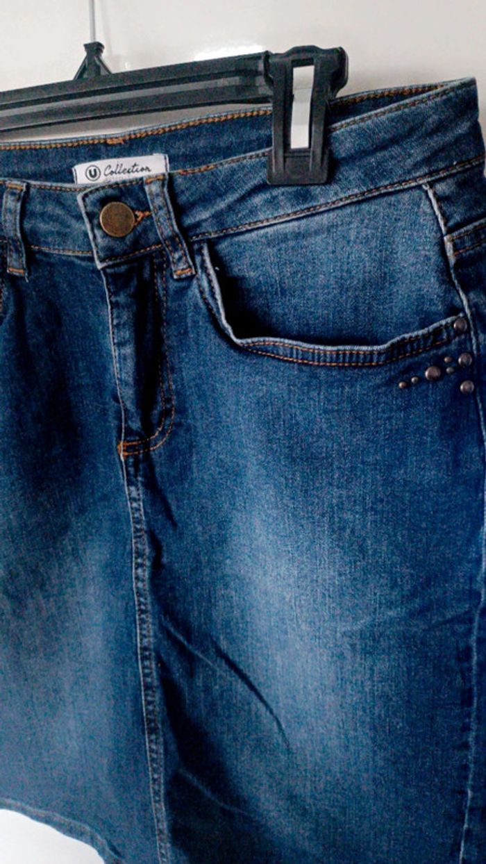 Jupe en jean neuve Taille 38 Matière légèrement stretch Clous au niveau des poches #laura845jupes
