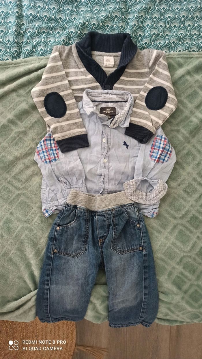 Ensemble pantalon tex (12m), chemise h&m (9-12m) et gilet h&m (9-12m) En très bon état Peu porté