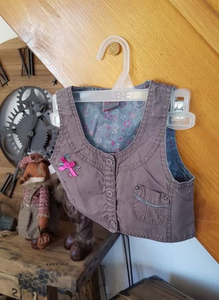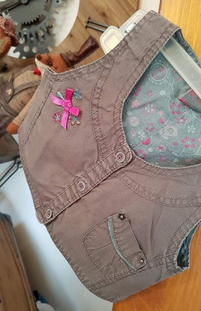 FILLE 4 ANS N°7 boléro chic Marron clair Imprimé , jolie noeud rose bonbon 100% coton Taille 4 ans Gémo 1.50e #kelly_fille4ans