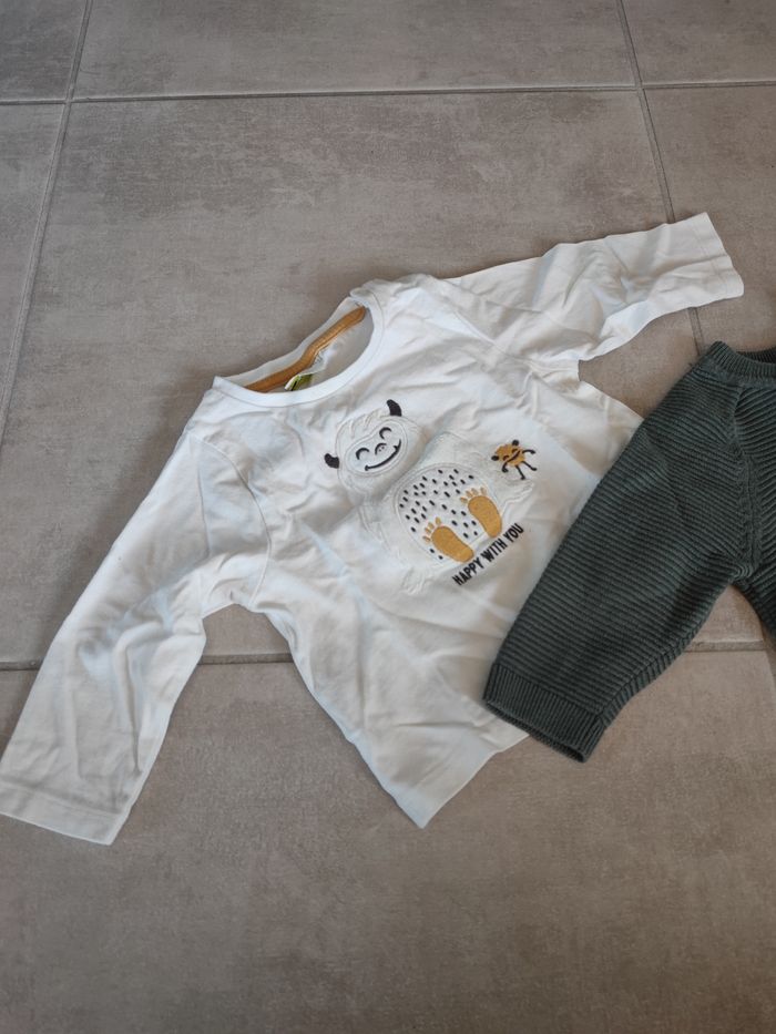 En très bon état Haut manches longues blanc et veste verte Taille 9 mois Marque tape à l'oeil et Okaïdi lo