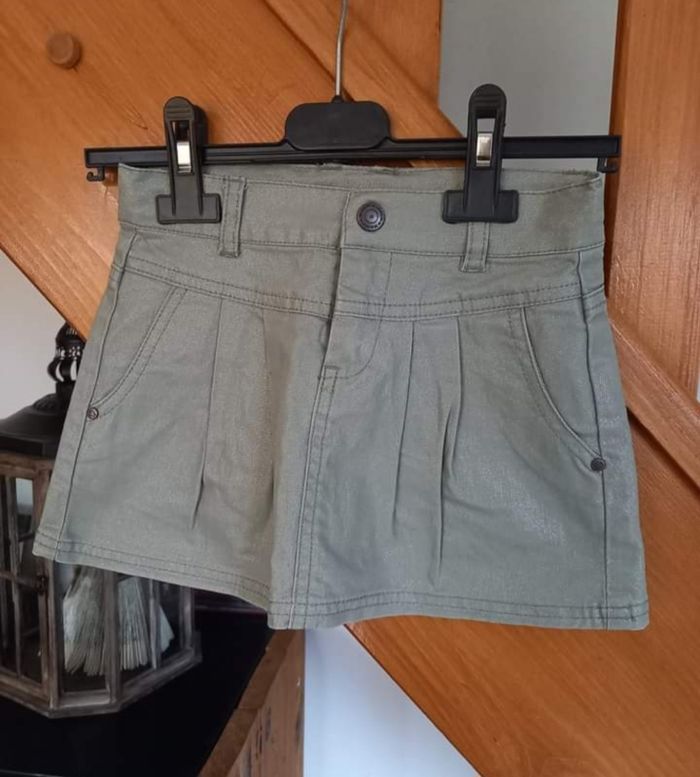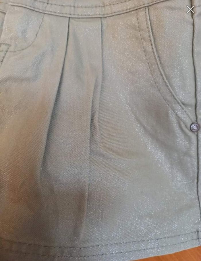 FILLE 4 ANS N°10 Jupe vert clair Brillant Pailleté argent Taille ajustable Taille 4ans 99% coton , 1% elasthane Tape a l oeil 3e #kelly_fille4ans