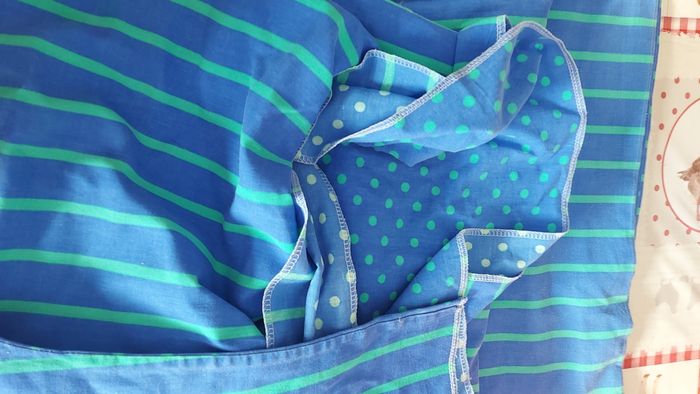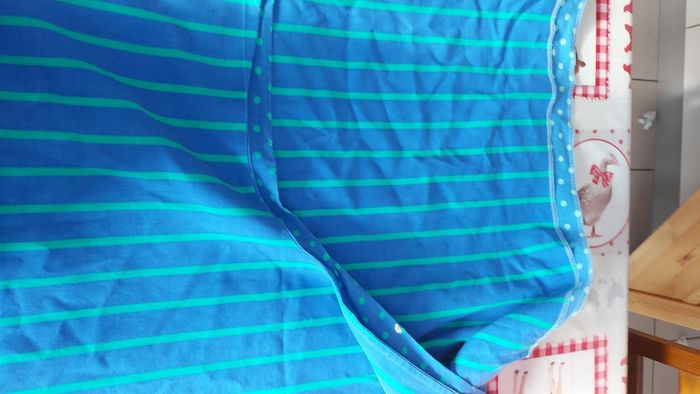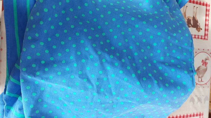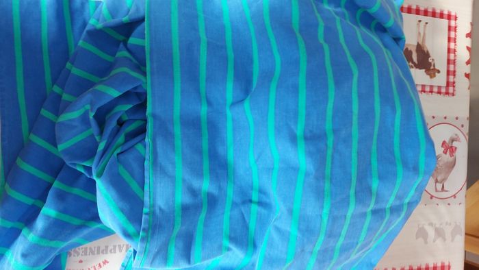 Housse de couette réversible, 232 x 210 cm. Une tache de peinture sur le rebord qui se place sous le matelas, donc pas visible