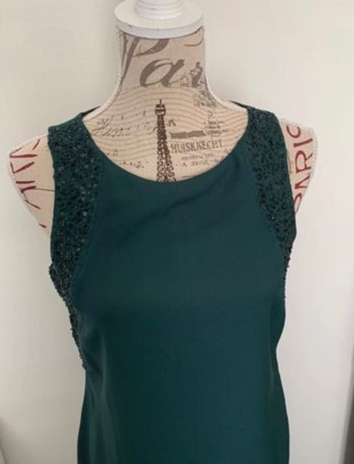 Robe Cache Cache T36 verte Fermeture au dos Doublée Perle /sequin Longueur 86 cm du haut au bas du dos Jamais portée D’autres articles T36 en excellent État et propre sans taches ni accros disponible