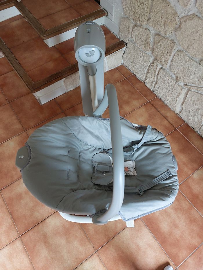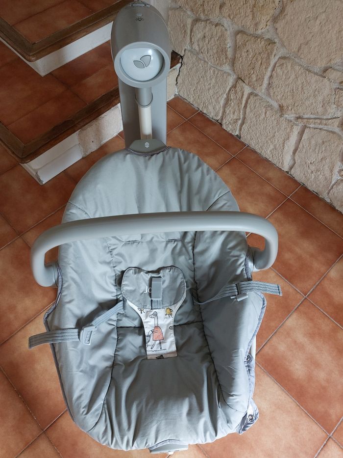 Balancelle marque Joie. Sur secteur. Très bon état. Différentes fonctions. Le transat peut se retirer du socle. Effets sonores, lumières, différentes vitesses et vibrations. Quelques rayures.
