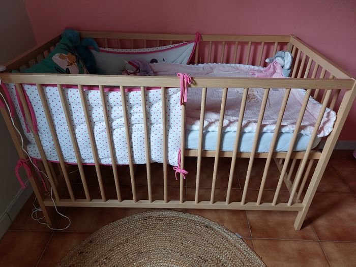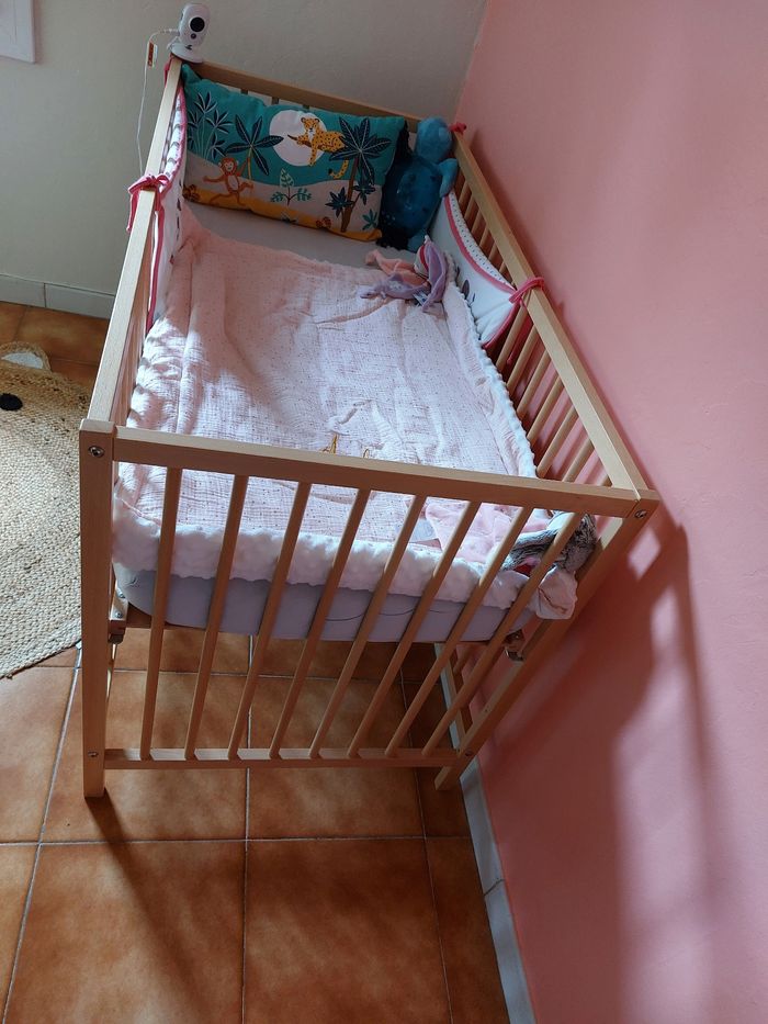 Lit à barreaux 120cm / 60 cm + matelas. Bon état. En bois.