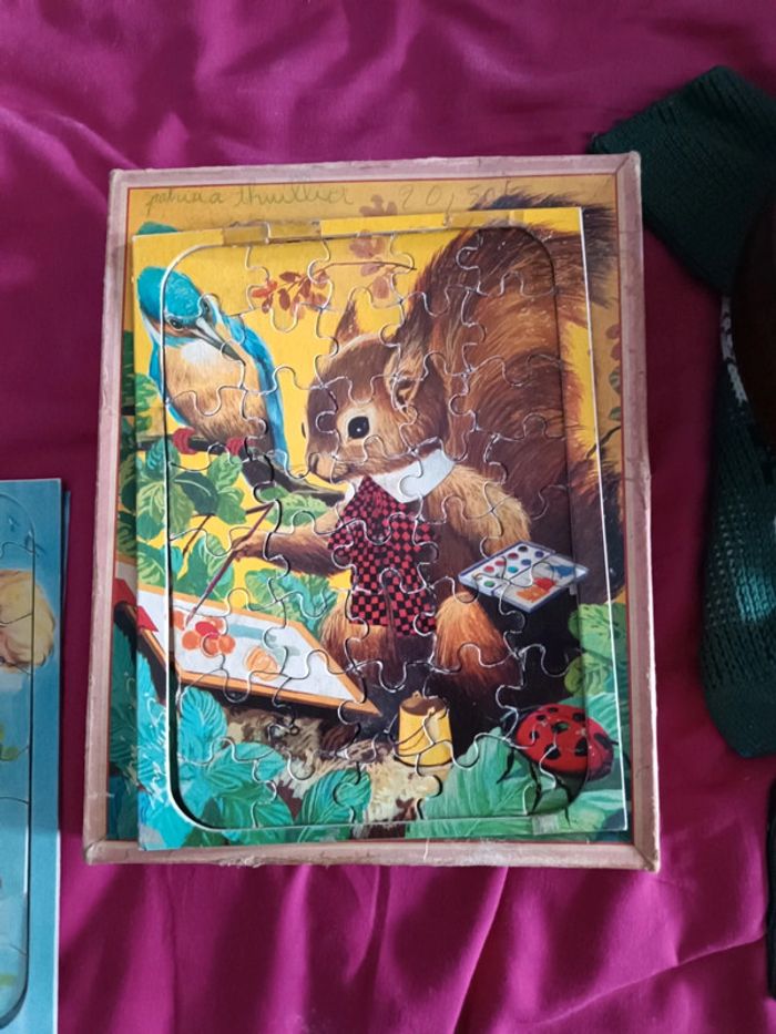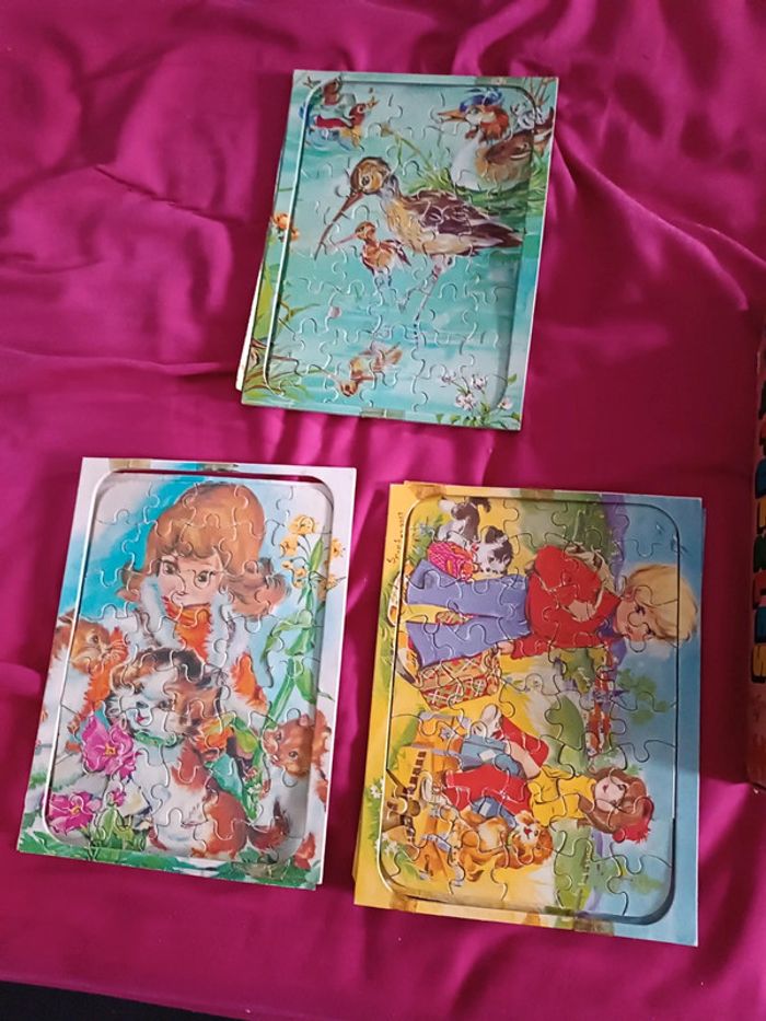 A vendre boîte avec 4 vieux puzzles tous complets. Prix 20€