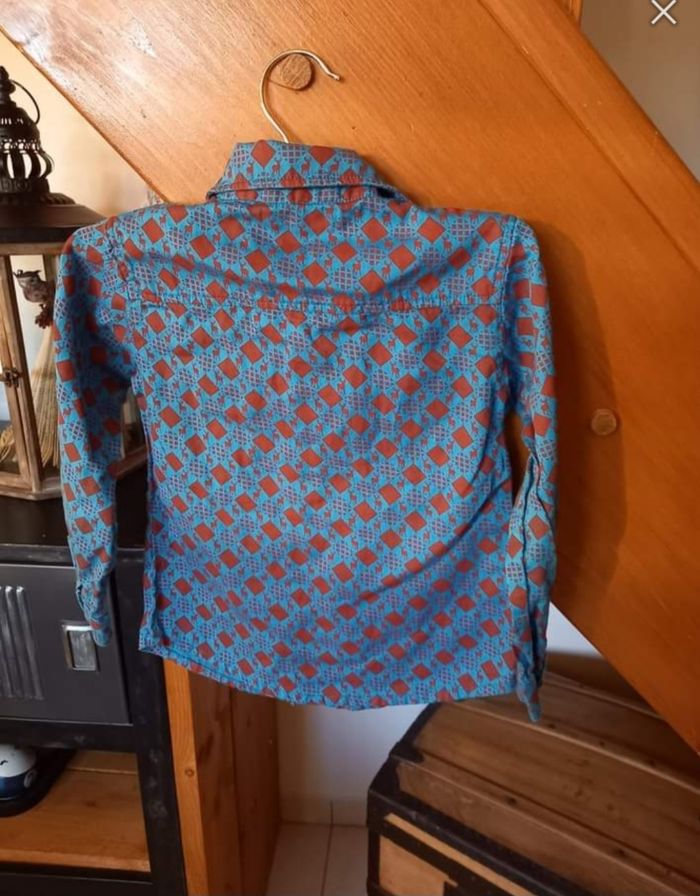 GARÇON 3 ANS N°51 Chemise bleu cerf bordeau Longue manches Bouton 100% coton Taille 3 ans Fred & ginger 5€ #kelly_garçon3ans