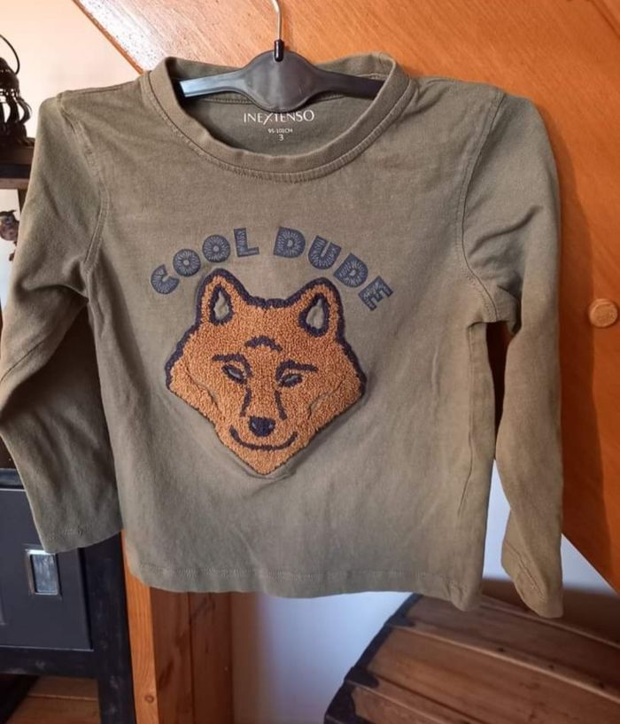 GARÇON 3 ANS N°58 Maillot longue manche Vert kaki Imprimé doux 100% coton Taille 3 ans In extenso 3€ #kelly_garçon3ans