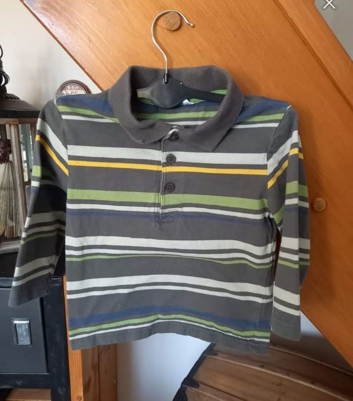GARÇON 3 ANS N°61 Polo longues manches vert/ jaune / gris rayé 100% coton Taille 3 ans Kid kanaï 2€ #kelly_garçon3ans