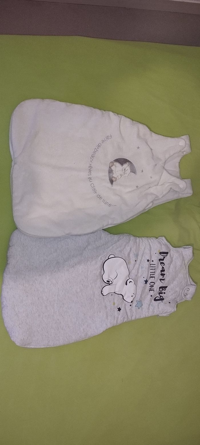 Lot de 2 gigoteuses Une polaire de la naissance a 5 mois Et une autre un peu moins chaude 3/6 mois Les deux sont en très bon état.
