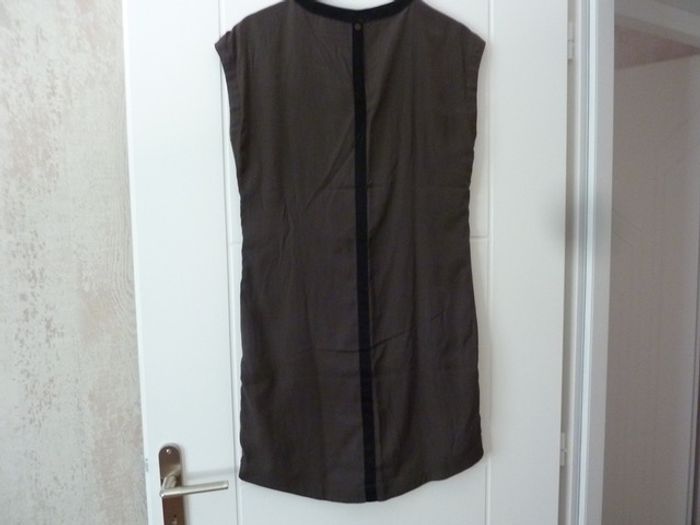 Très jolie robe Elora, doublée, noire/kaki, en polyester, très peu portée.