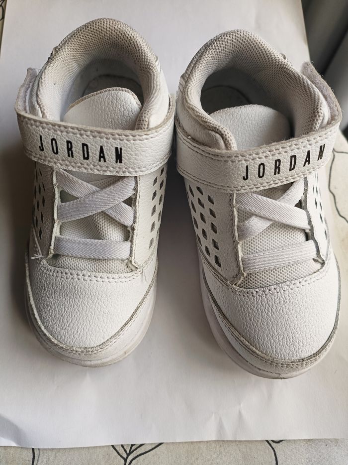 A vendre basket blanche Jordan pour enfant taille 25. Bon état .