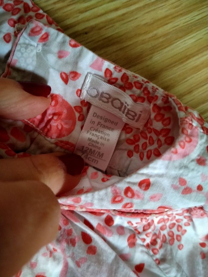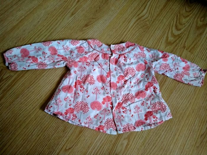 Chemise manches longues fleurie. Obaibi. Taille 12 mois Blanche, avec des arbres rose saumon. Manches longues, possibilité d'attacher le bout des manches avec un petit bouton. Boutons tout le long du dos. Doublure intérieure Très bon état. Lavé avec lessive bébé. Maison non fumeur. 2 Euros Envoi par mondial Relay. Remise en main propre possible sur Beauregard Vendon Riom ou Clermont Ferrand 63 D'autres articles sur v'nt'd ptitesev63
