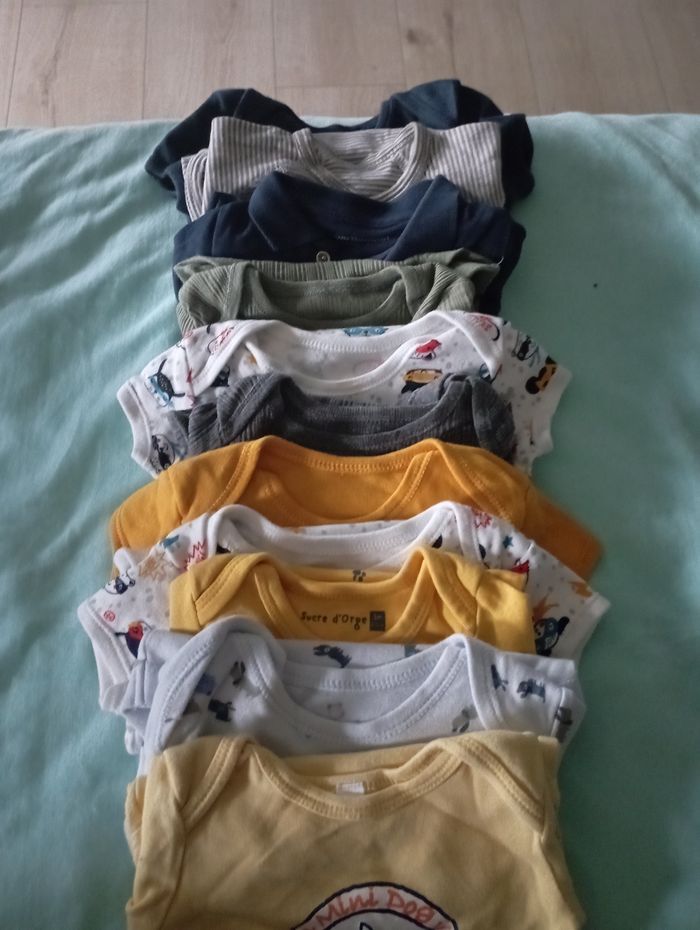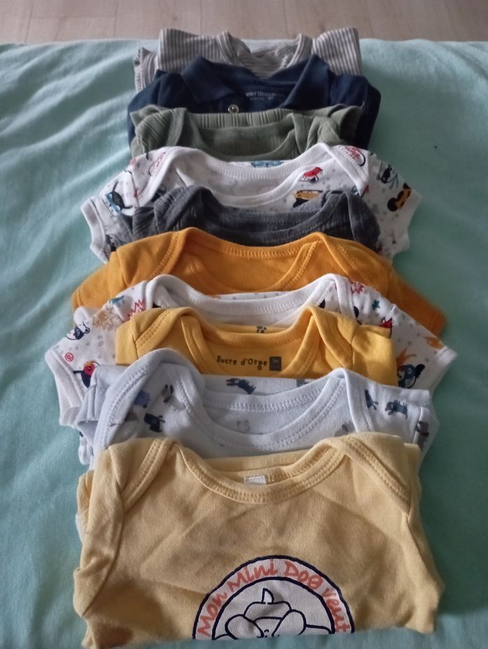 Body longues manches et courtes manches. 0-3mois en bon état pas de tâches . Possibilité de prendre les 11 à prix réduit.