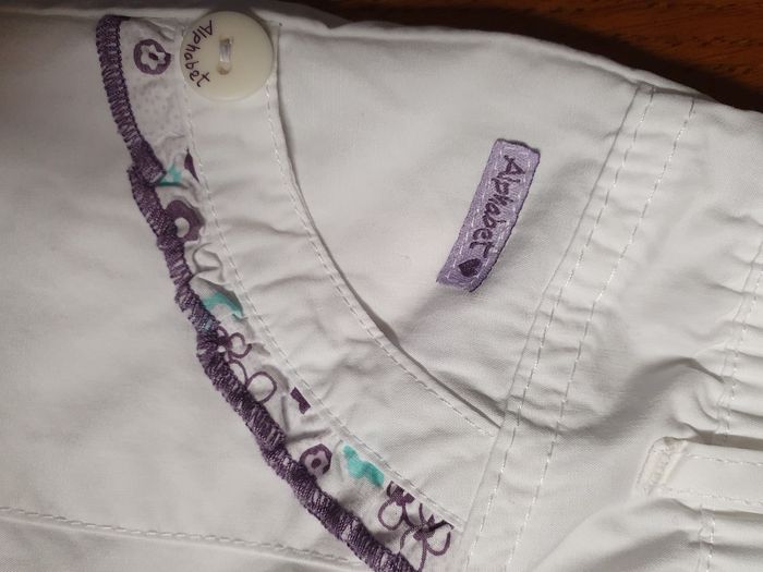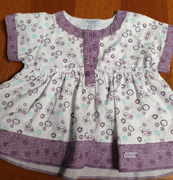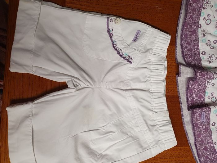 Joli petit ensemble pantalon + tunique rose et blanc. Taille 6mois, état impeccable.
