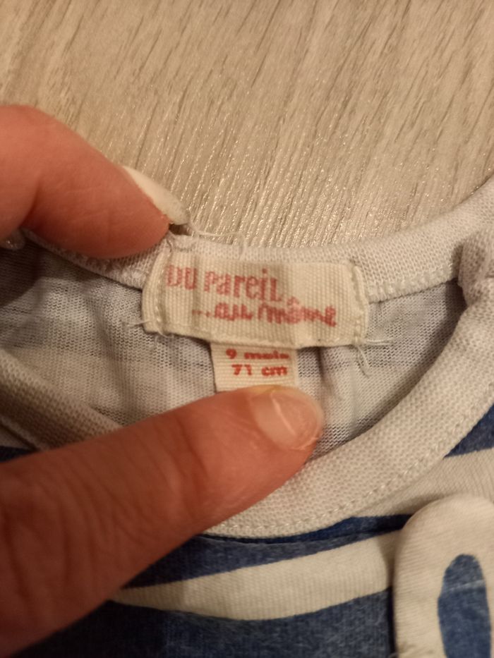 Je vend un ensemble de la marque "du pareil au même" en taille 9 mois en bon état.