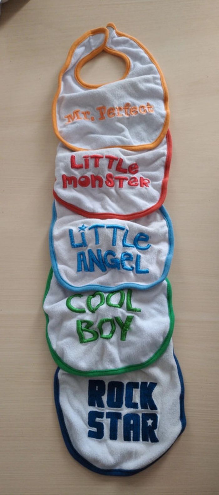 Lot 5 bavoirs marque Babies R us Les couleurs ne sont plus aussi éclatantes qu'au départ car ils ont été porté mais reste en bon état général