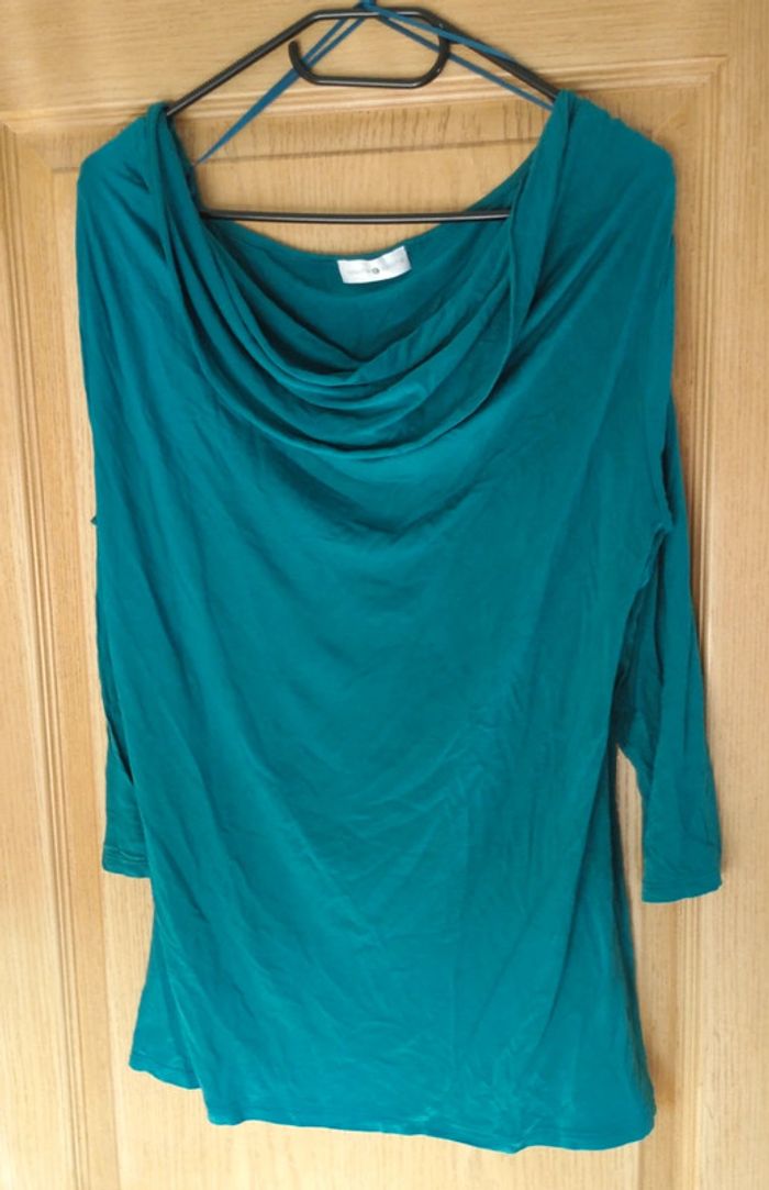 Haut bleu canard manches 3/4 avec grand col sur le devant Taille 4 #vetementfemmejustine8059 #femmetaille42justine8059