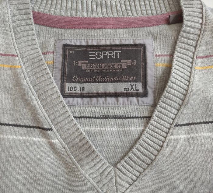 Pull gris rayures col V Esprit taille XL Un peu décousu au niveau des aisselles (défaut) mais ne se voit pas une fois porté #vetementhommejustine8059 #hommetailleXLjustine8059