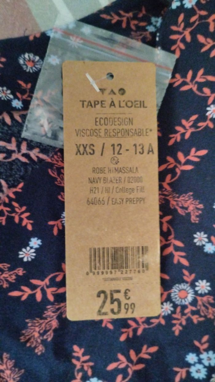Vend robe ou tunique Neuve Tape à l'oeil Matière agréable Noté 12-13 ans