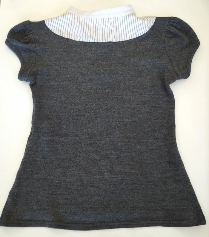 T-shirt à manches courtes gris et blanc Taille 3 3 boutons sur le devant Un peu jauni a l'intérieur du col (voir dernière photo) mais ne se voit pas une fois porté Souvent porté donc peluche un peu #vetementfemmejustine8059 #femmetaille38justine8059