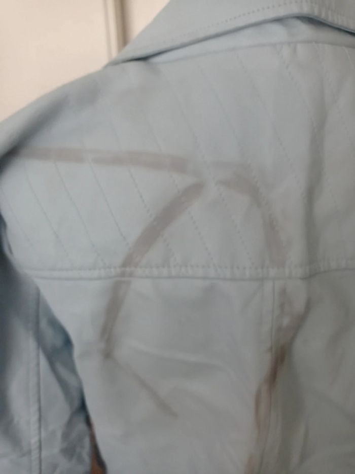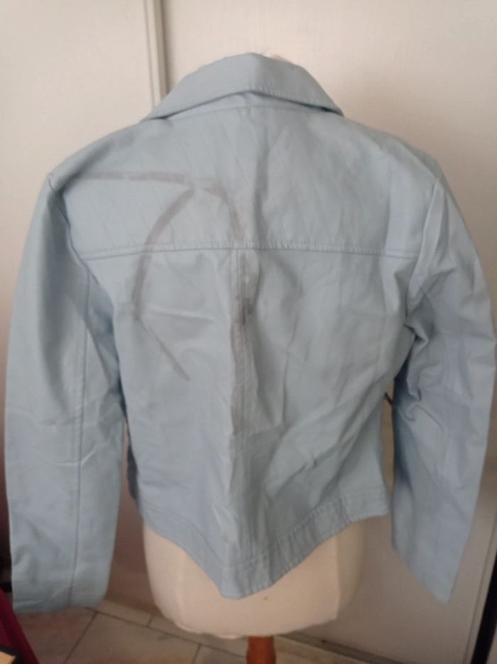 Perfecto bleu Attention Trace fer à repasser dans le dos