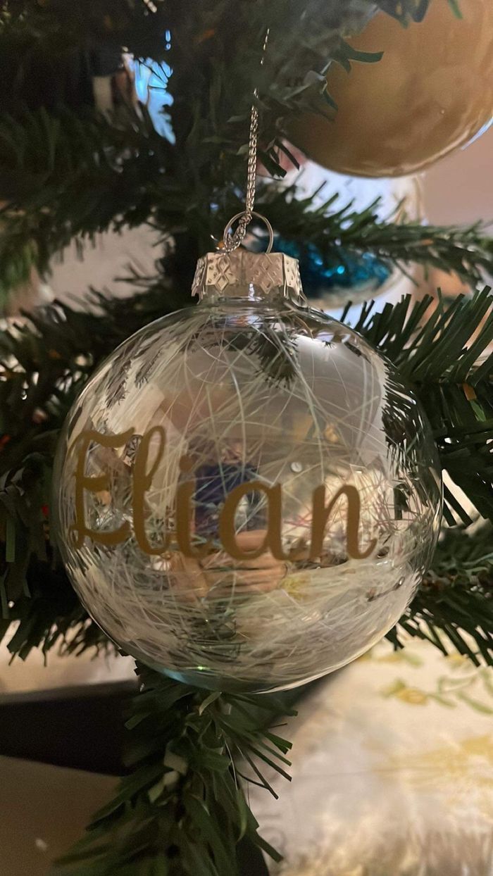 Bonjour je vous propose de jolies boules de noël personnalisé avec prénom est le prix de la boule est à cinq euros plusieurs couleurs disponibles c’est vous qui choisissez votre couleur