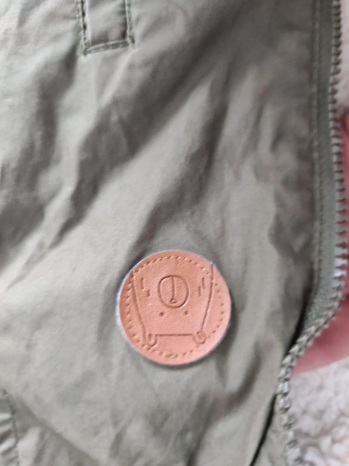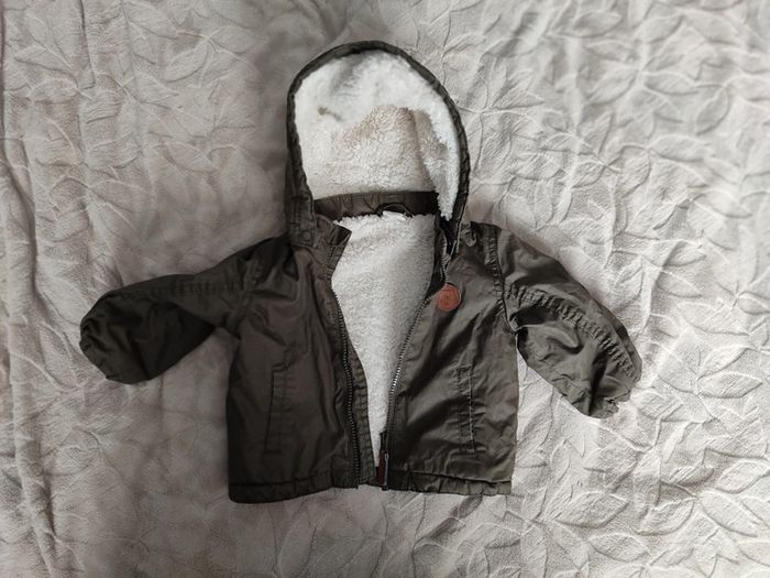 Manteau h&m 6 mois intérieur Sherpa moumoute polaire de couleur kaki intérieur blanc avec manche resserrer pour pas que bébé ne prenne froid un petit ours est présent sur le devant du manteau Les autres articles avec le code #aneloubebe dans la barre de recherche