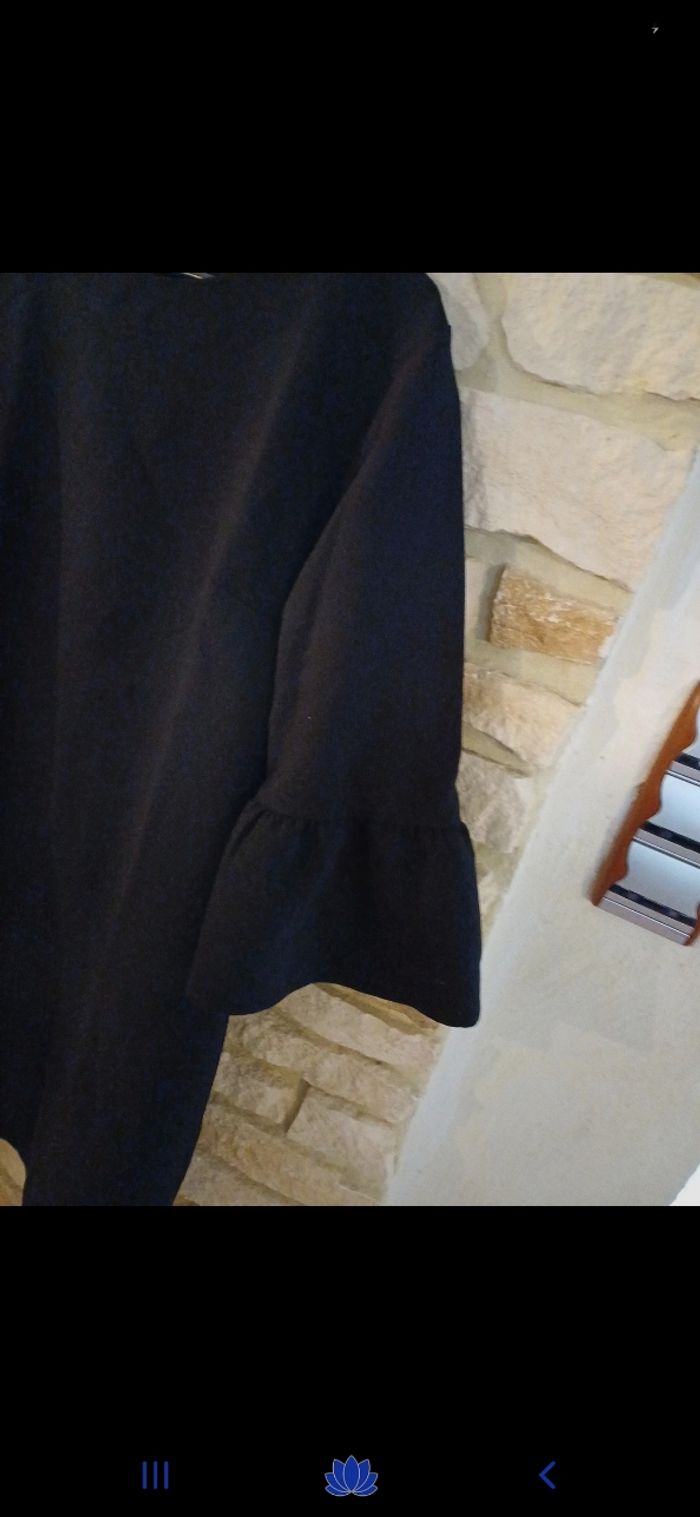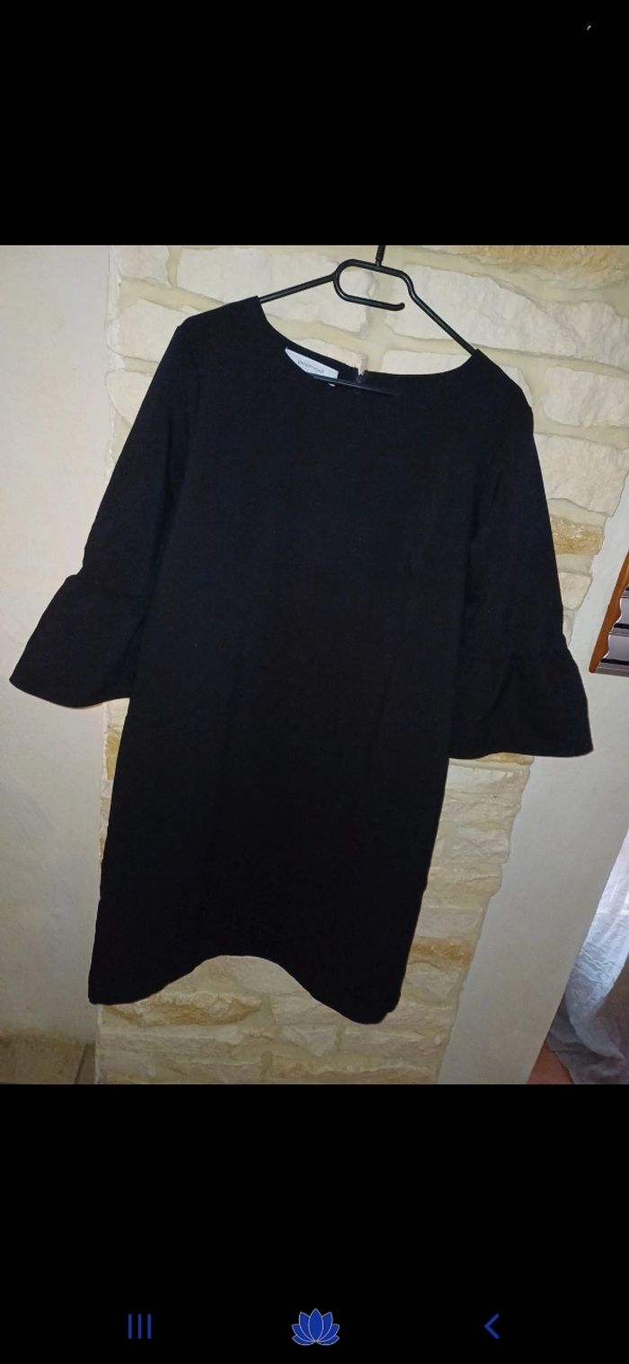 Jolie robe noire. Manches 3/4, évasées. Fermeture éclair à l arrière.