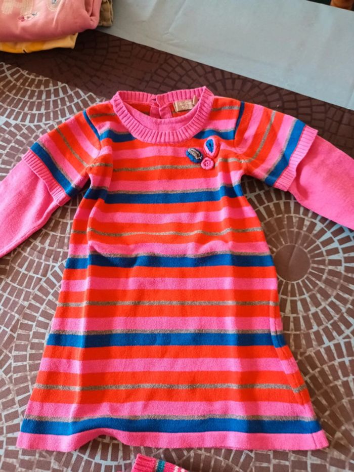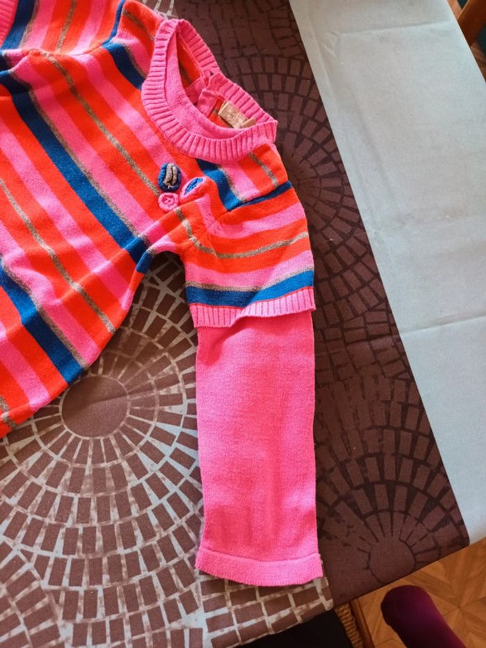 Robe pull Fille 18 mois Couleur rose Motif rayures rouge, bleu et gris Marque bébé rêve Très bon etat