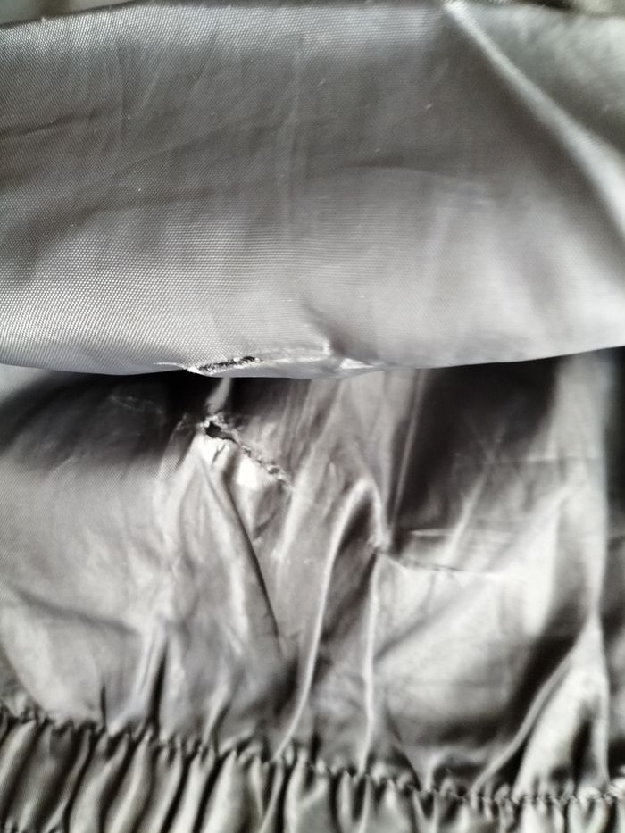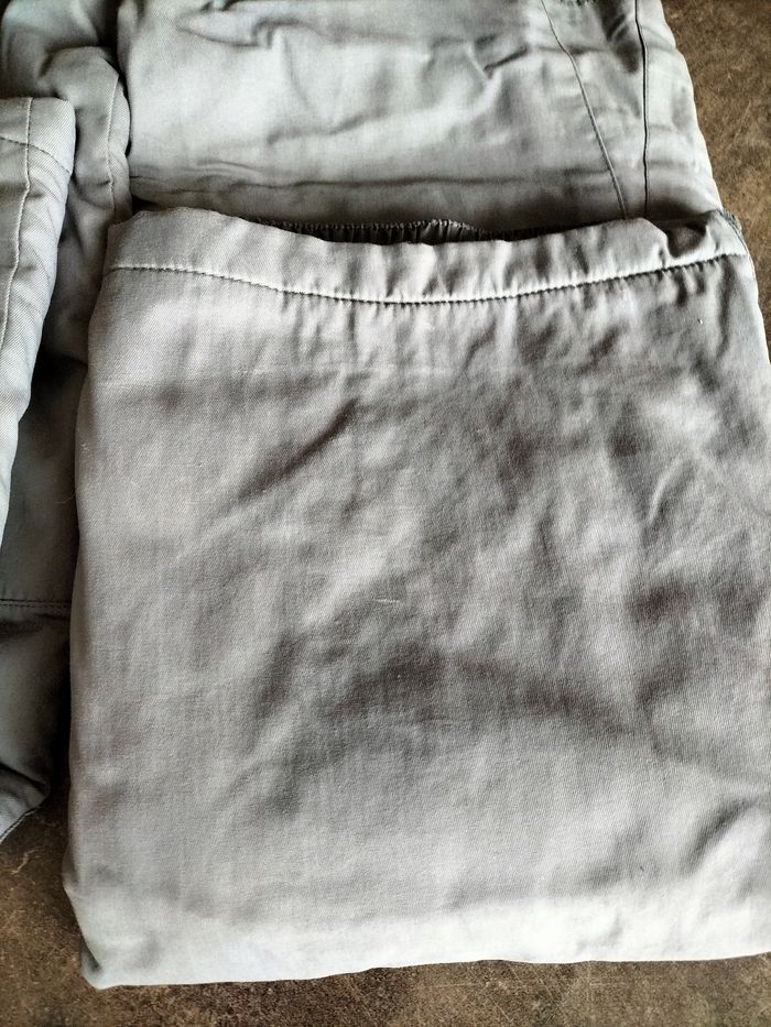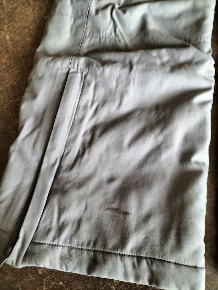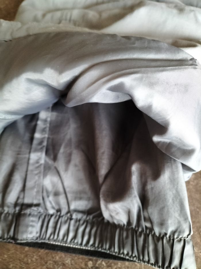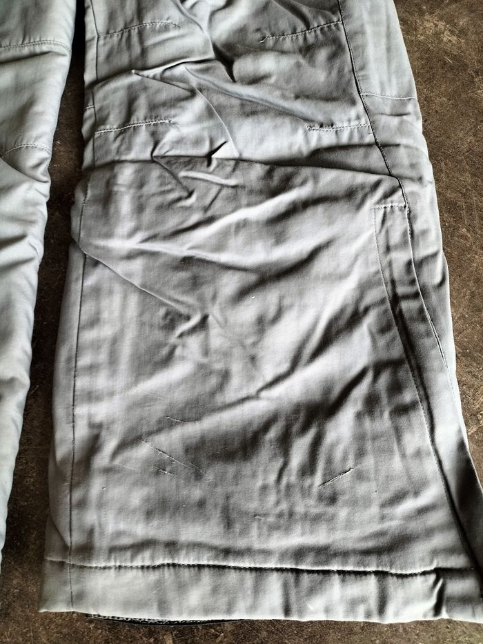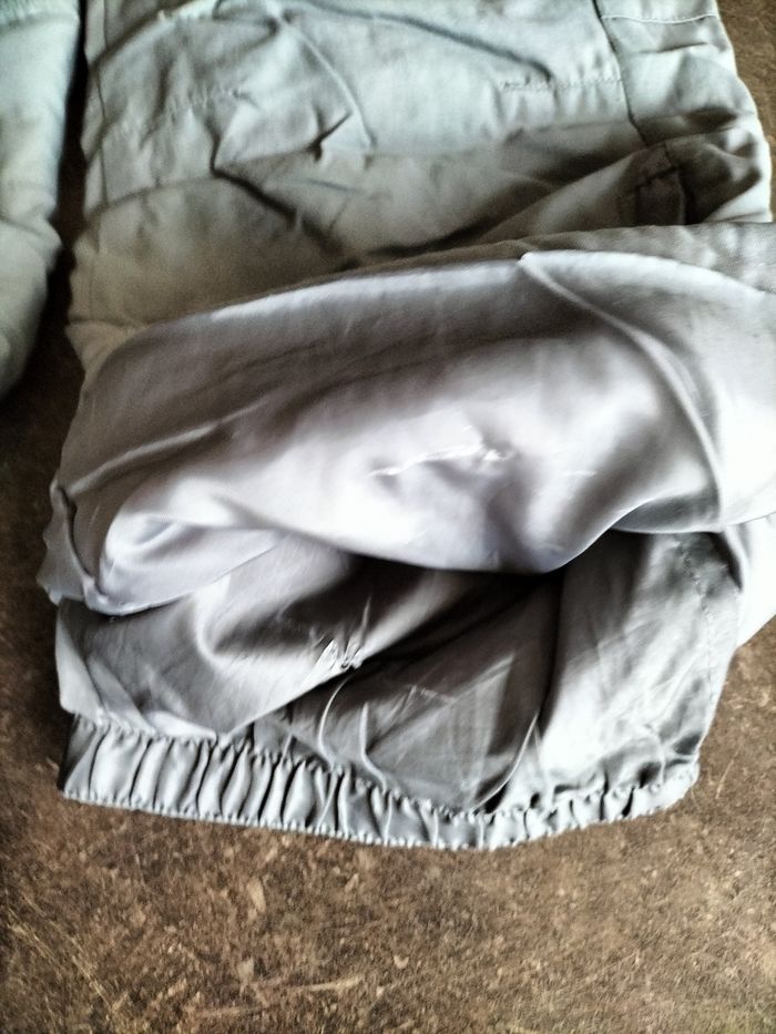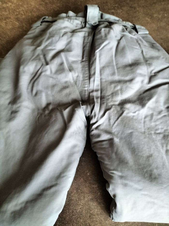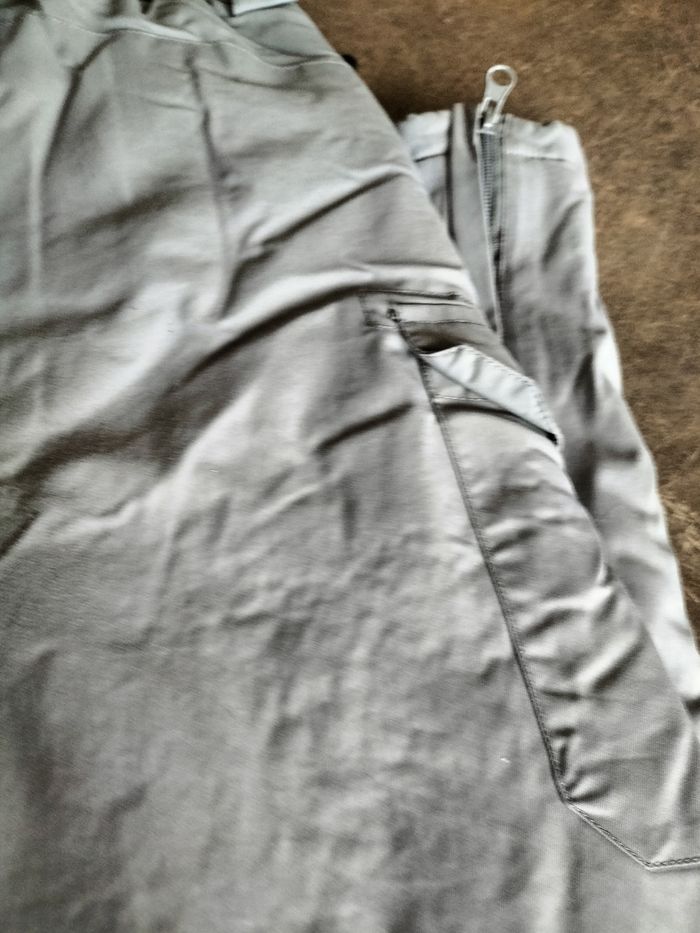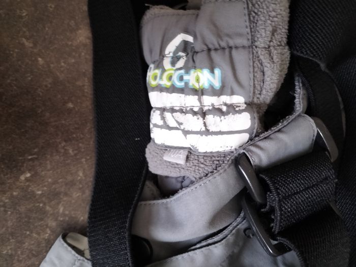 Salopette de ski grise en 10 ans En défaut, elle a quelques éraflures et un petit trou au niveau de la doublure .