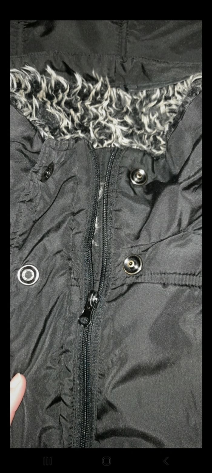 Manteau long de marque ligne a suivre en très bon état taille M. Deux poches devant, fermeture éclair descend au 3/4, moumoute au col et capuche démontable grâce à sa fermeture éclair.
