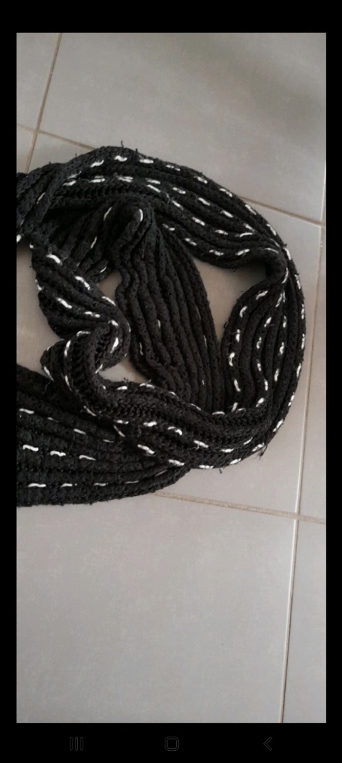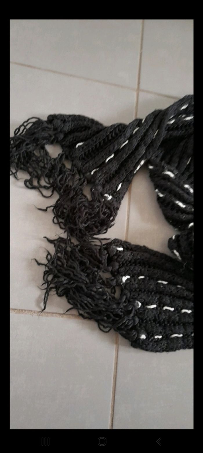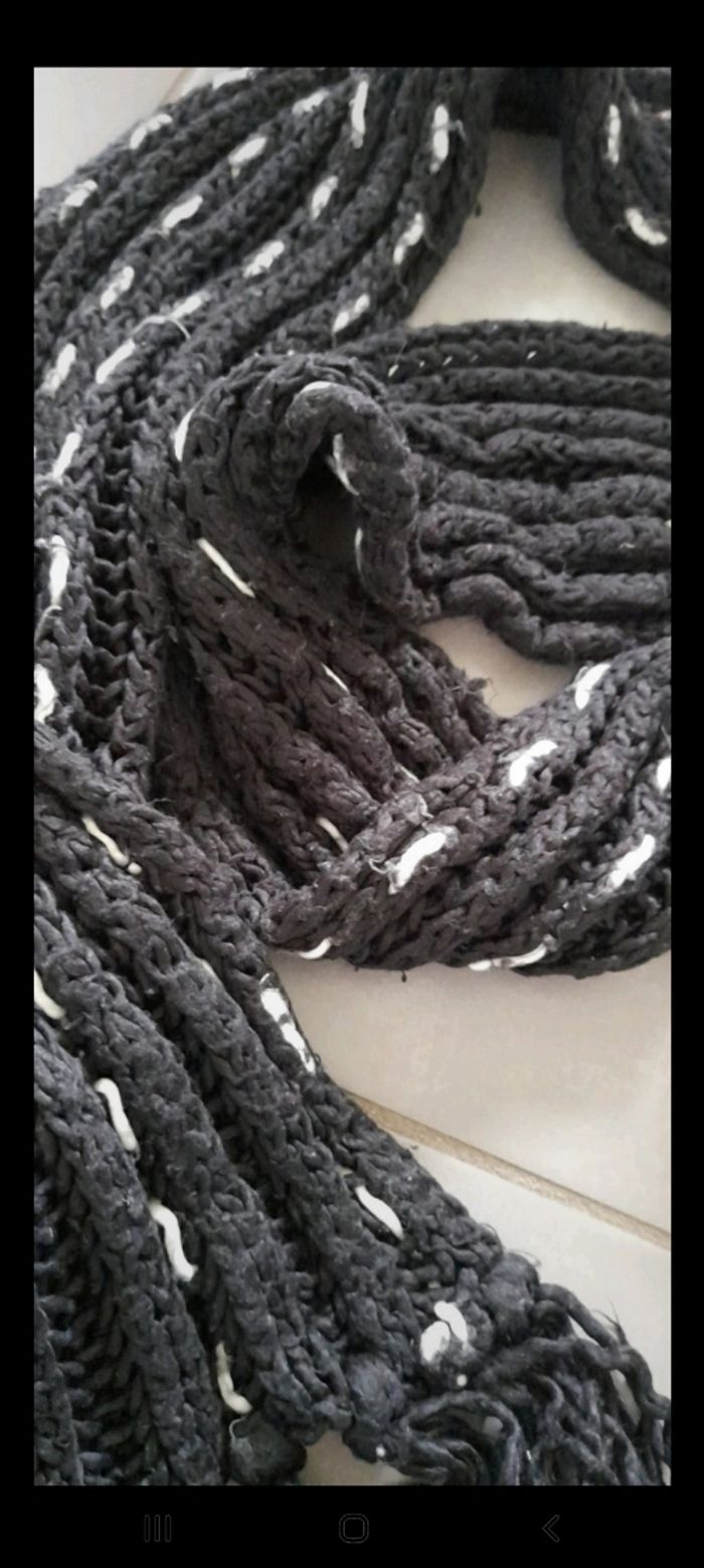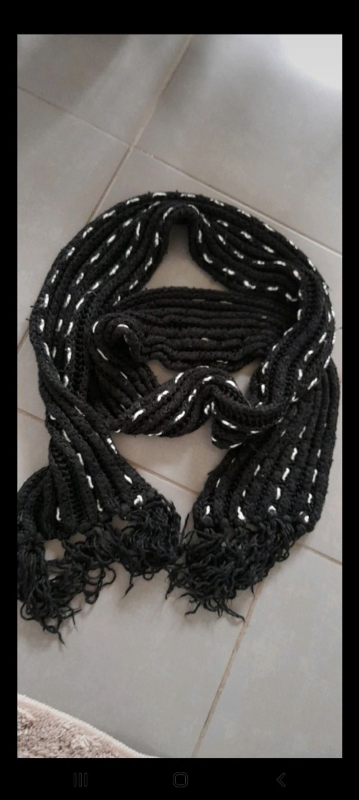 Écharpe très chaude et longue couleur noire et blanche longueur 2m2. De marque cache cache