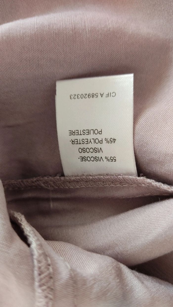 Tunique fluide Longueur 78 cm Largeur sous aisselle 58 cm (environ) Fluide et légère Effet satiné Couleur taupe Polyester et viscose Fronces sur poitrine Petit bouton de fermeture dans le dos