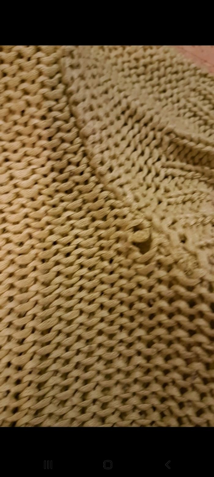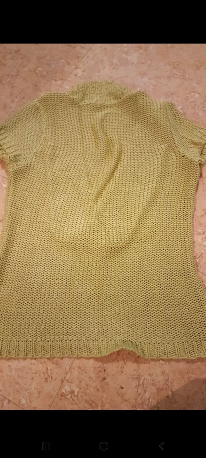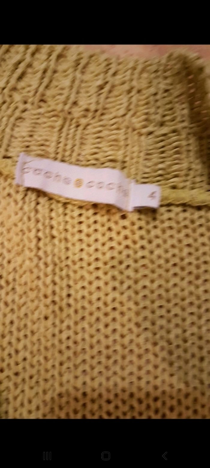Pull en mailles couleur vert clair de marque cache cache en taille 4. Une maille à reprendre voir dernière photo