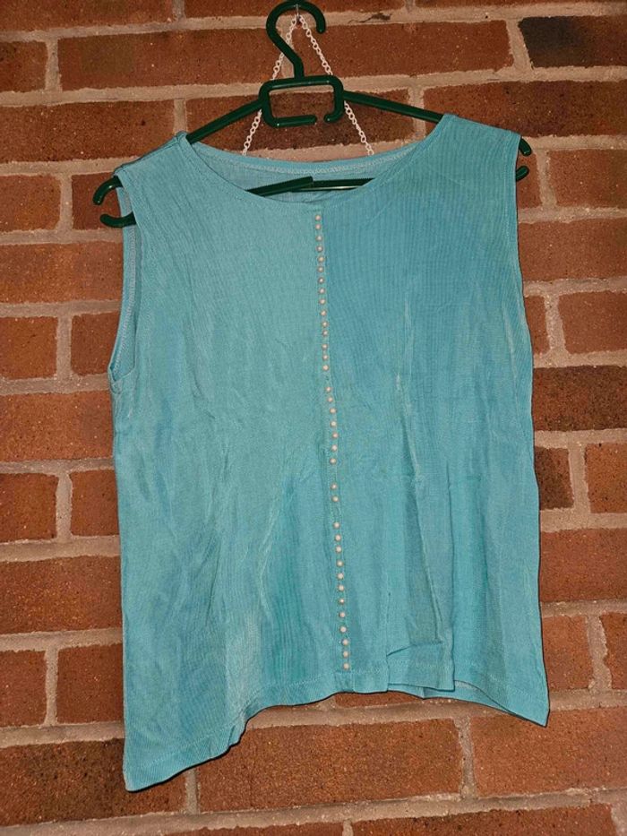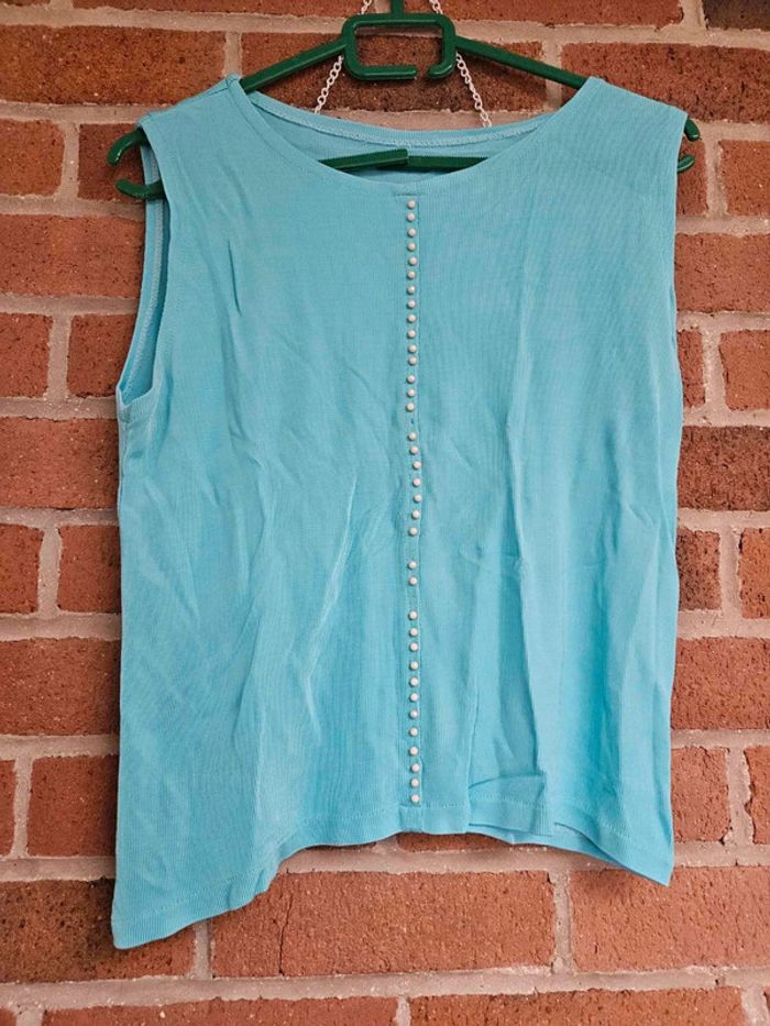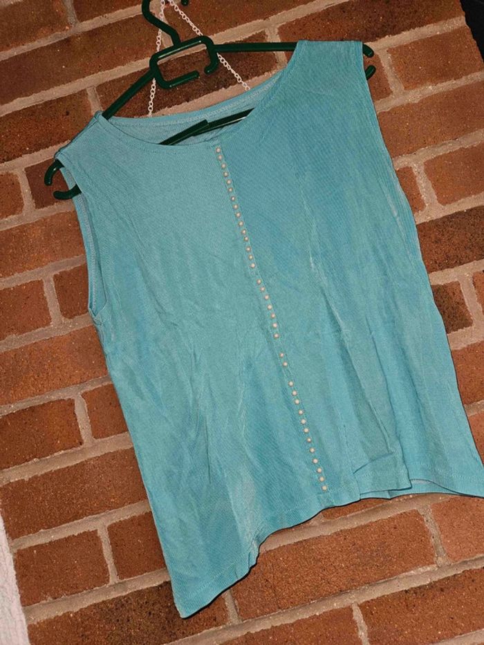 Haut turquoise avec perles. Assez sympa, Vintage. #turquoise #vintage #perles #mov59Femme