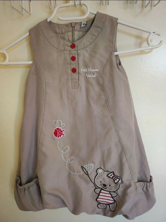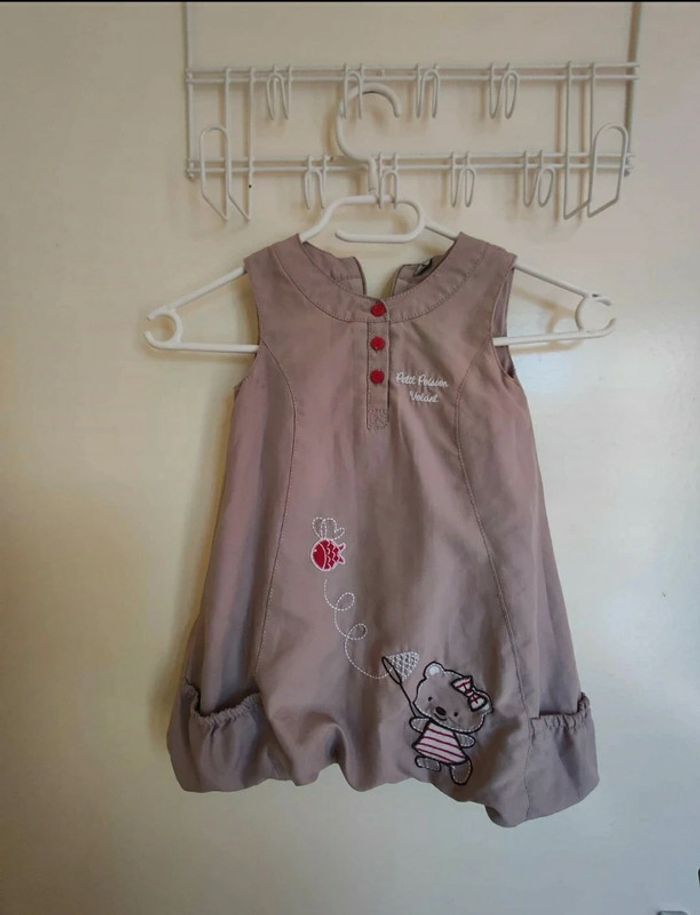 Petite Robe. Il s'agit d'une taille 18 mois. Je ne sais plus où je l'ai acheté. Couleur taupe / marron clair. #robeboule #mov59Enft #poisson #fillette #ourson #rouge #bleu #petitnoeud #blanc