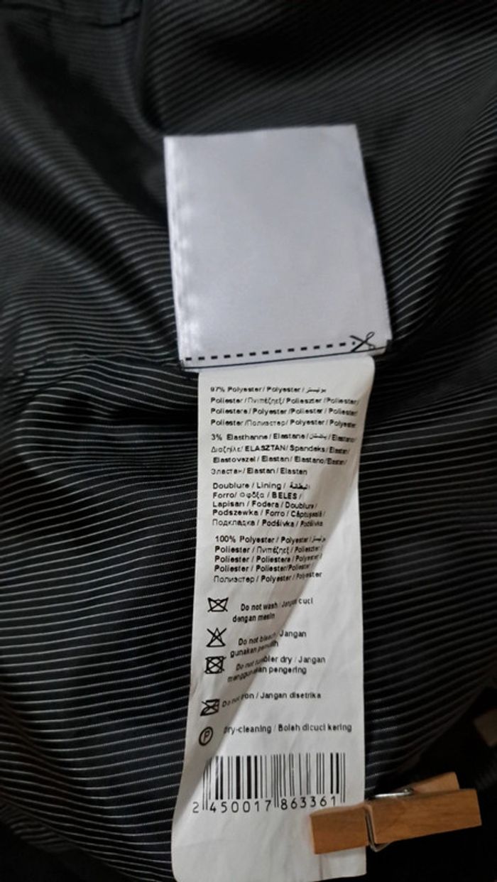 #kawin89femme38 blazer noir de chez camaïeu, taille 38 article porté 1 fois, état comme neuf voir composition photo longueur 70cm aisselles 46cm je reste à votre disposition pour toute information complémentaire 🙂