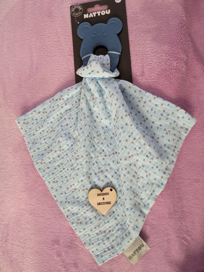 Ce joli doudou plat souris bleu de la marque NATTOU sera le compagnon idéal de bébé pour passer des nuits paisibles. Facile à attraper, ce doudou plat souris tout doux l'accompagnera dès sa naissance. Doudou en mousseline de coton bleu de 30 cm avec un jouet de dentition en silicone en forme de souris. Parfait pour les dents de bébé ! Caractéristiques :Souris / Doudou plat / Mixte / bleu Conseils d'entretien :Lavable en machine à 30°C Marque : Nattou