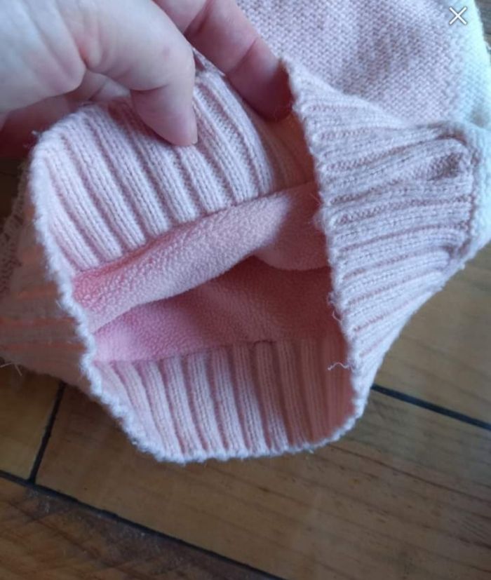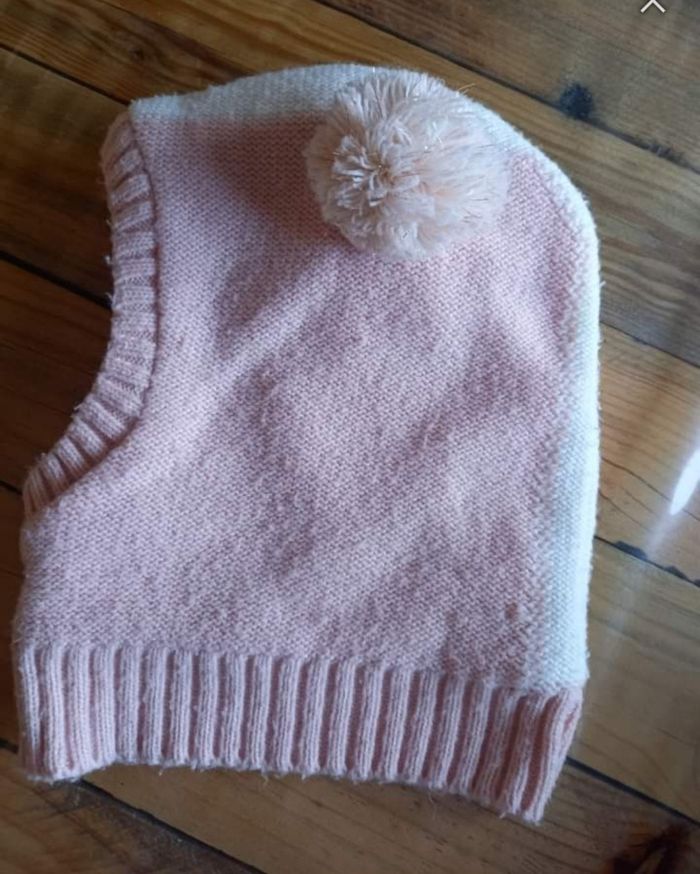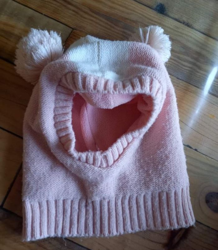 ACCESSOIRES FILLE N°28 Cagoule pompom laine Interieur polaire Rose / blanc Taille 2/ 3 ans 2€ #kelly_accessoiresfille