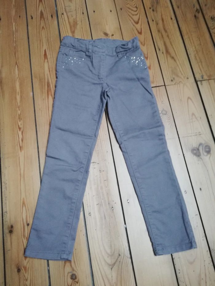 Pantalon fille gris/marron avec strass au niveau des poches 6 ans Taille ajustable #tisse59fille6ans