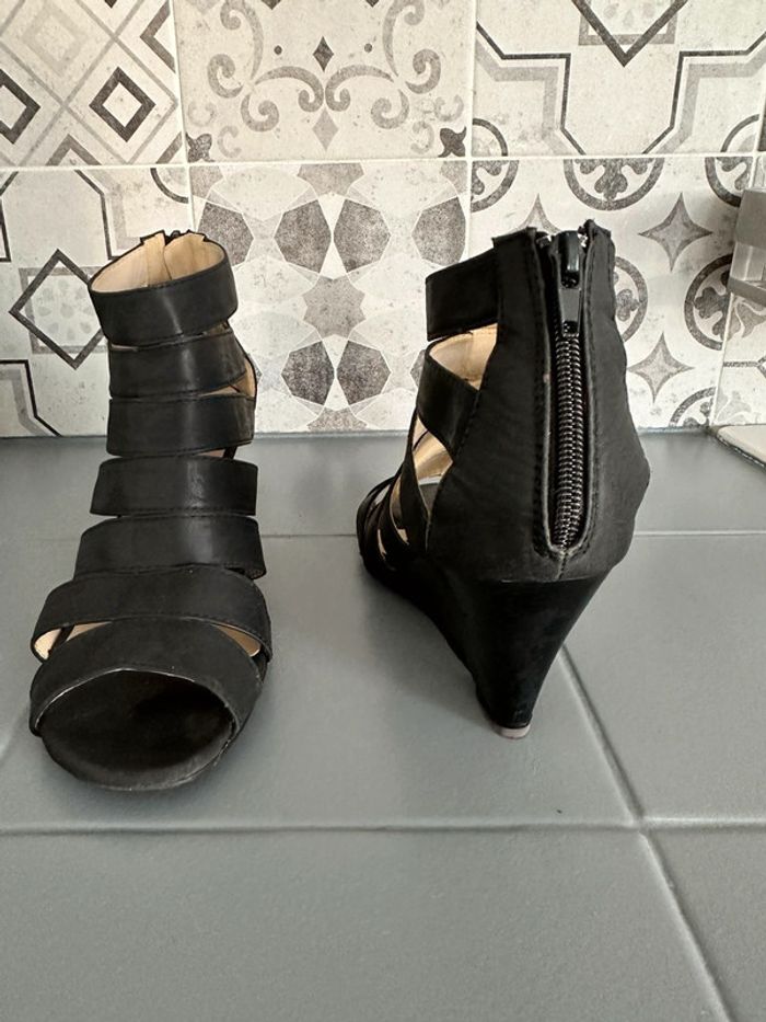 Compensée noir façon gladiateur, taille 39 - photo numéro 3