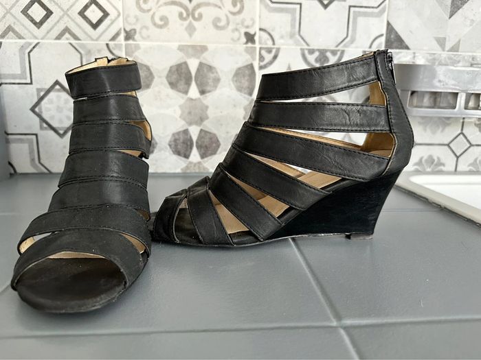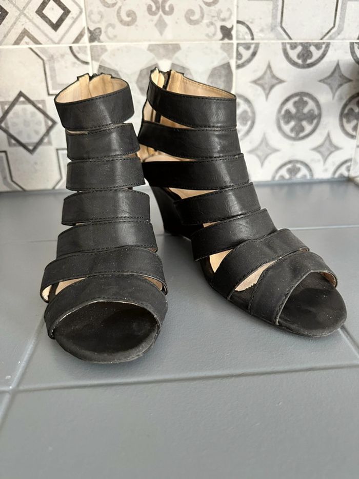 Compensée noir façon gladiateur, taille 39 - photo numéro 1
