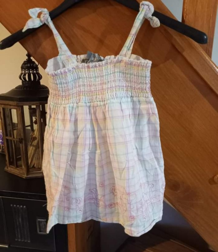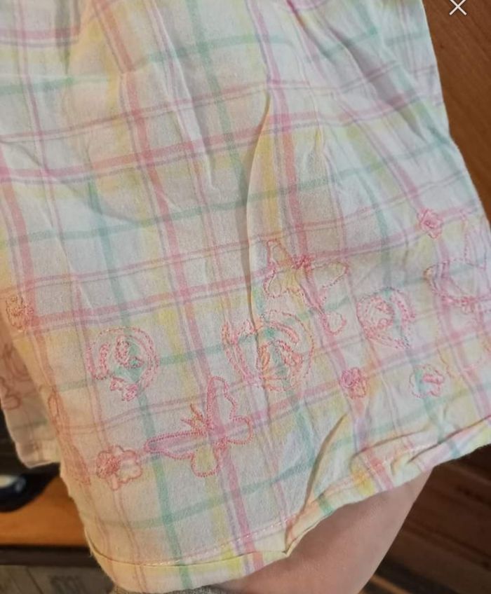FILLE 5 ANS N°111 Debardeur carreaux Bretelle noeuds Elastique haut Blanc / rose , menthe , jaune Volant broderie/ doublé 100% coton Taille 5 ans Vynil fraise 2€ #kelly_fille5ans
