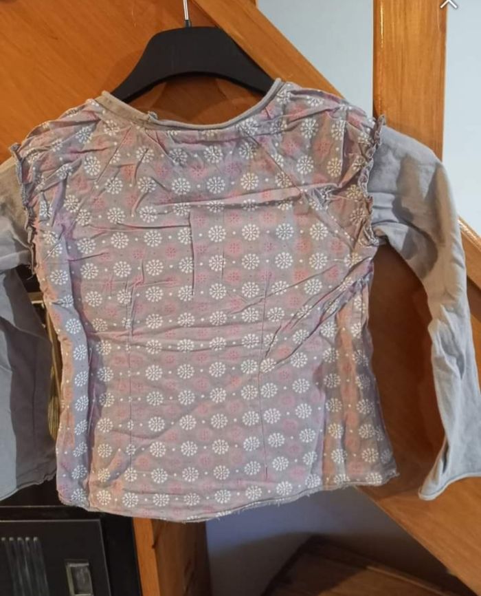 FILLE 5 ANS N°106 Maillot + blouse gris , rose / imprimé Fermeture eclair coté 100% coton Taille 5 ans Tape a l oeil 3€ #kelly_fille5ans