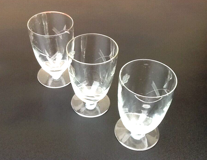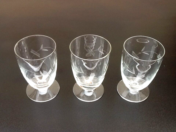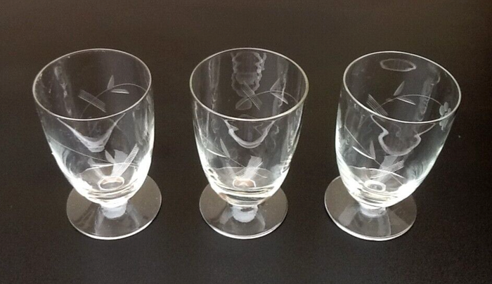 Années 1930  3 Verres sur piédouche Décor floral ciselé