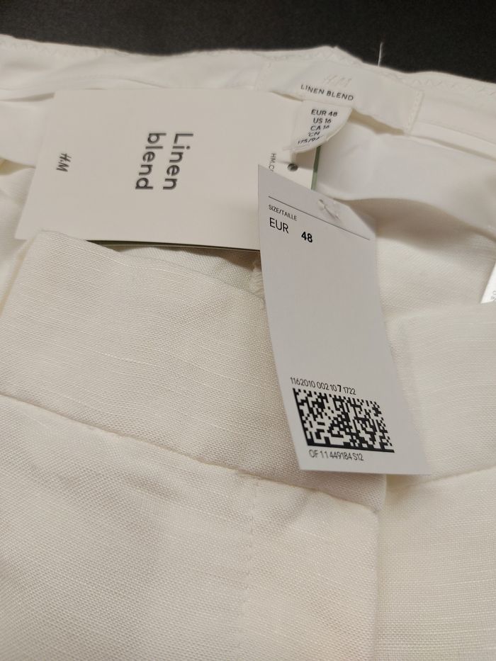 Taille48 taille très large Tour de taille 104 Hauteur 105 Entrejambe 75 Blanc Viscose/ polyester/ lin