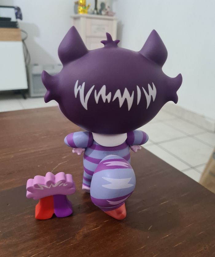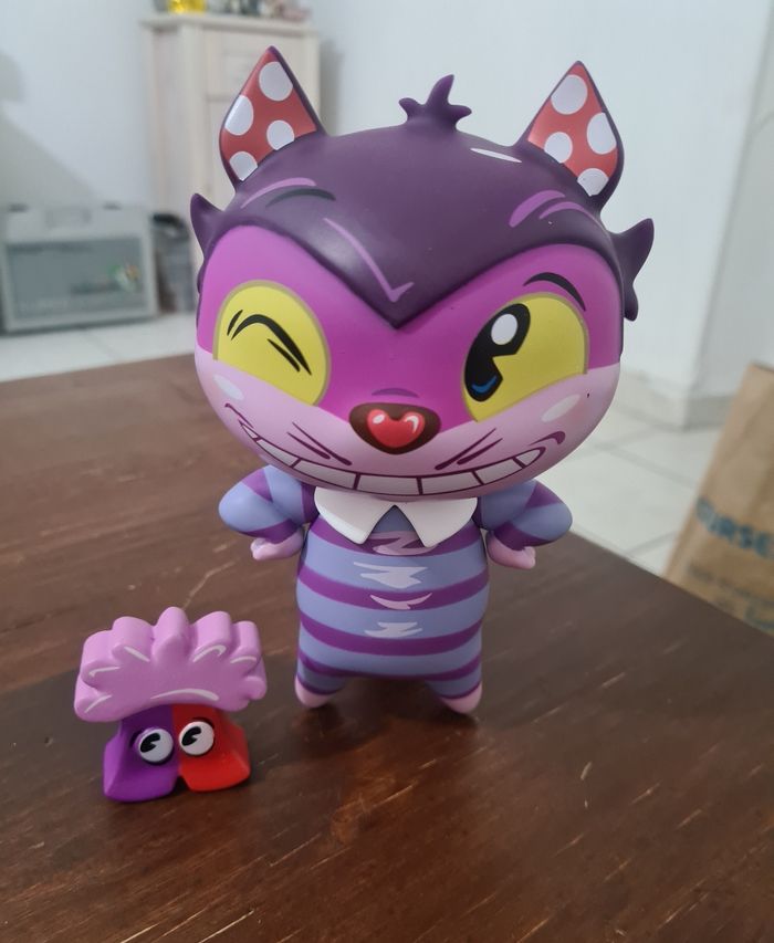 Statue Vinyl du Cheshire cat par la creatrice "Miss Mindy". Un design tout en rondeur pour le celebre Cheshire cat d'Alice au pays des merveilles. Mesure environ 15cm.