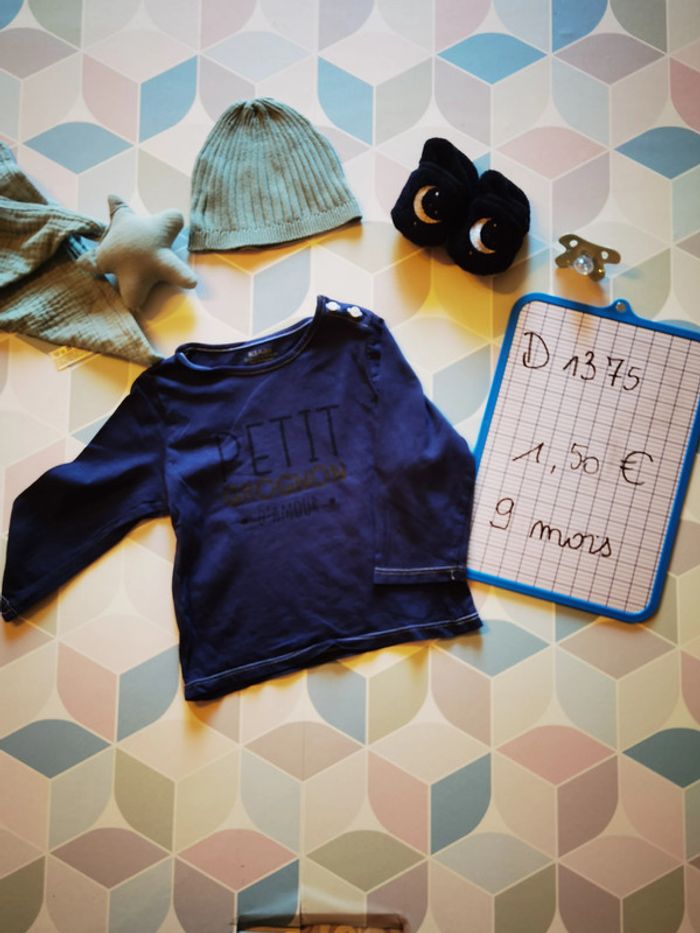 tee-shirt bleu marine à manches longues pour garçon de 9 mois #labourseo80_garçon9mois N'hésitez pas à me contacter pour des achats multiples site internet : www.la-bourse-o.fr